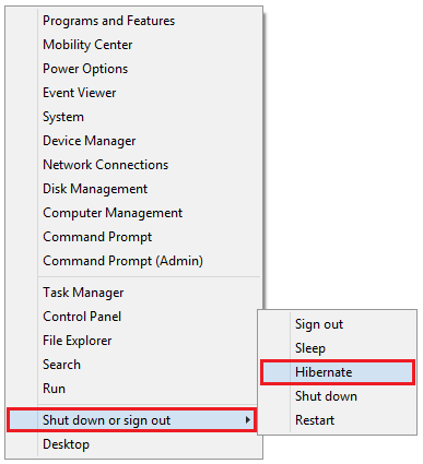 [ The explanation is based on Windows 8.1/Windows 8.1 Pro. ] [ How to hibernate Windows ] ● Click the Start button and then Power to put Windows into hibernation mode ● How to hibernate Windows by right-clicking the Start button