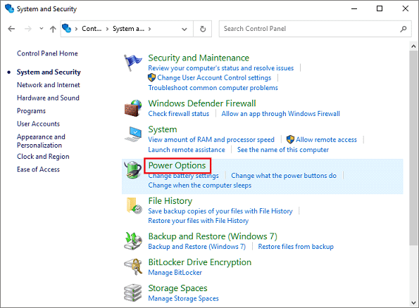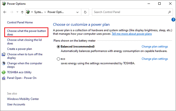 5. When the "Power Options" screen appears, click "Choose what the power buttons does."