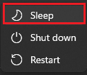 11. Make sure there is a "Sleep" option in the menu that appears. The operation to display sleep in the power item on the Start screen is complete.