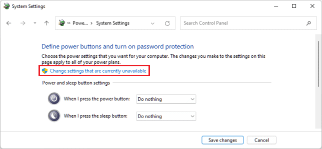 6. When the "System Settings" screen appears, click "Change settings that are currently unavailable."