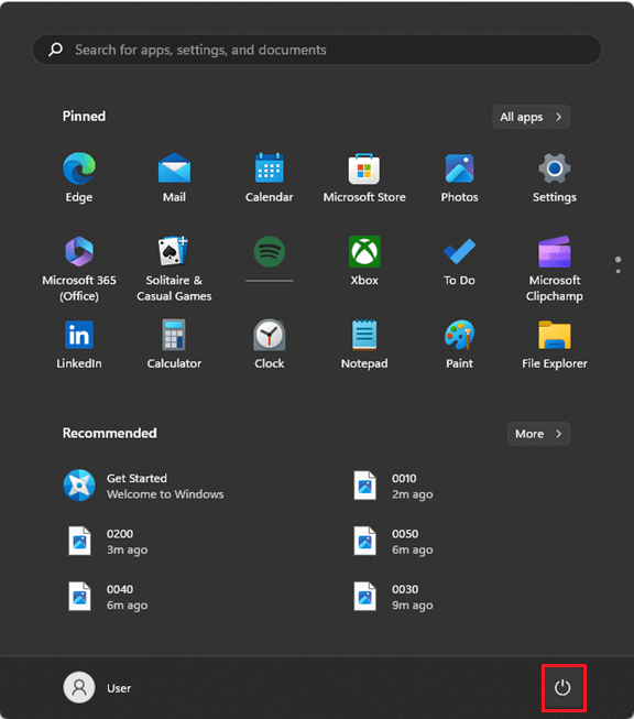 10. When the Start screen appears, click "Power."