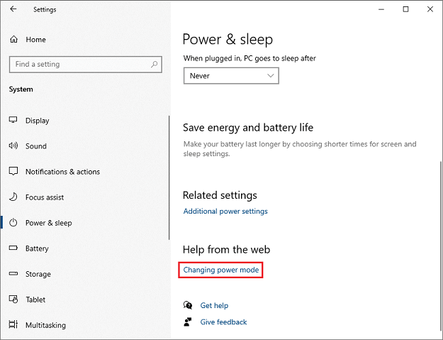 6. When the "Related settings" screen appears, click "Changing power mode."