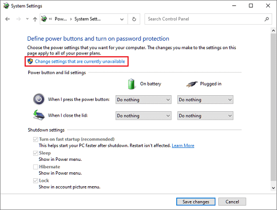 8. Click Change settings that are currently unavailable.