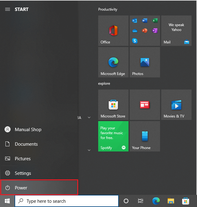 14. When the Start screen appears, click "Power."