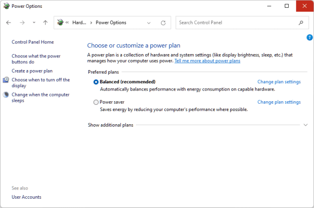 8. When you return to the "Power Options" screen, click the "Close" button.