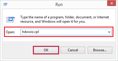 3. Enter "hdwwiz.cpl" in the "Name:" field and click the "OK" button.